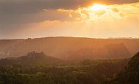 Precies op het juiste moment diende zich in de verte een fantastische sfeer aan! De nevel werd op precies het juiste moment geraakt door het gouden licht.
