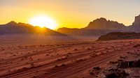 Zonsondergang over het prachtige landschap van Wadi Rum, in het zuiden van Jordanië.