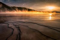 Een mooie zonsondergang in Yellowstone bij de Grand Prismatic Spring.