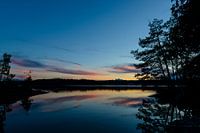 Zonsondergang boven het LeLang meer in Zweden in de zomer.