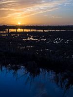 Zonsondergang in het overstroomde natuurgebied Hammeniederung, een van de belangrijkste wetlands in Noordwest-Duitsland.