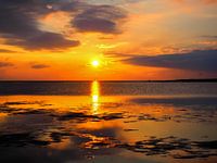 Zonsondergang in de Waddenzee aan de Noordzee