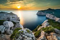 Zonsondergang bij de baai van Alghero in het westen van Sardinië, het eiland van Italië in de Middellandse Zee.