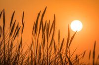 Zonsondergang in de duinen van het natuurreservaat Ellenbogen, Sylt, Sleeswijk-Holstein, Duitsland