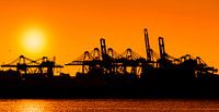 Terwijl de zon achter de kranen onder gaat en de meest mensen weer huiswaarts gaan, gaat de activiteit in de haven van Rotterdam gewoon door, dag en nacht.