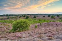 Zonsondergang in het heidelandschap op de Veluwezoom bij Arnhem in augustus.
