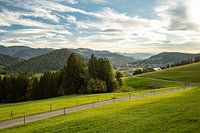 Zonsondergang in de herfst met uitzicht op Oberstaufen