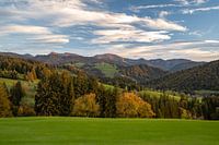 Zonsondergang in de herfst met uitzicht op de Hochgrat en de Allgäuer Alpen bij Oberstaufen