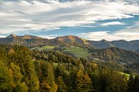 Zonsondergang in de herfst met uitzicht op de Hochgrat en de Allgäuer Alpen bij Oberstaufen