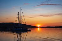 Zonsondergang in de stad Fjällbacka in Zweden.