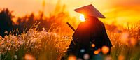 Zonsondergang in het veld - Samurai silhouet van Poster Art Shop