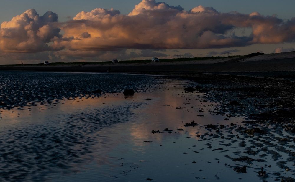 Een prachtige zonderondergang zonder de zon in beeld kan ook mooi zijn. Een mooie roze wolk hangend boven het strand van Rilland (Zeeland).