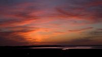 De wolken kleuren rood bij een zonsondergang bij de Sluftervallei op Texel