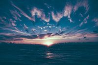 Zonsondergang met wolkenlucht op het strand van Terschelling bij Paal 7 .