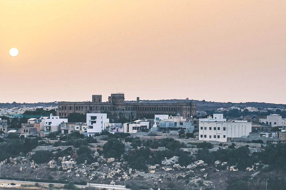 Vanaf het uitkijkpunt in Mdina heb je een fantastisch zicht over een groot deel van het eiland Malta. Op deze foto zie je het dorpje Mtarfa net voor zonsondergang.