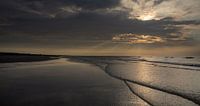 Prachtige avondzon op het rustige strand van het Nederlandse Waddeneiland Ameland.