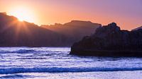 Zonsondergang op het strand bij Bandon, een stad in Coos County, Oregon, Verenigde Staten, aan de zuidkant van de monding van de Coquille River.