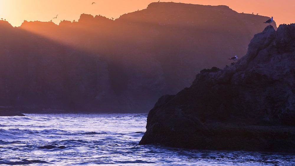 Zonsondergang op het strand bij Bandon, een stad in Coos County, Oregon, Verenigde Staten, aan de zuidkant van de monding van de Coquille River.