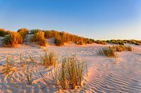 Duinen bij zonsondergang op het strand van Juist, Oost-Friese eilanden, Duitsland.