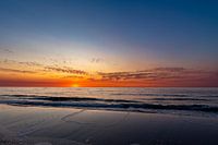 Zonsondergang over de zee op Juist, Oost-Friese Eilanden, Duitsland.