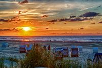 Zonsondergang aan het strand op het Oost-Friese Noordzee-eiland Juist in Duitsland, Europa.