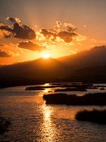 De zon verdwijnt net achter de bergen op het mooie Spaanse eiland Mallorca.