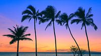 Een 16:9 foto van een avond na zonsondergang met palmbomen in de plaats Kihei, gelegen op het eiland Maui, één van de Hawaiiaanse eilanden in de stille oceaan.