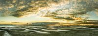 De zon zakt langzaam weg achter de wadden. Links aan de horizon ligt Vlieland. Het water trekt weg waardoor de wadden steeds beter zichtbaar worden. Een prachtige middag komt tot een eind aan West-Terschelling.
