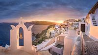 Het dorp Oia ( Thisa ) op het eiland Santorini in Griekenland. De zonsondergangen op het Griekse eiland in de Middellandse Zee zijn erg mooi om naar te kijken. Het dorp Oia is in het zuidwesten gebouwd, zodat de zon 's avonds altijd boven water staat. Zo heeft men 's avonds een heel mooi uitzicht op de zonsondergang en de kleine huisjes en steegjes die door de zon in warme oranje en rode tinten worden verlicht.