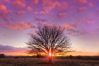 Prachtig avondrood tijdens zonsondergang op het Schenkenshul , een heuvel net buiten in Hoenderloo nabij bungalowpark Landal Miggelenberg op de Veluwe in de provincie Gelderland
