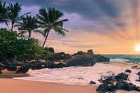 Zonsondergang bij Secret Beach, ook bekend als Makena Beach, Secret Cove Beach of Pakoo Beach bij Kihei op het eiland Maui, een van de Hawaiiaanse eilanden in de Stille Oceaan.