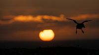 Tijdens een mooie zonsondergang, op het eiland Skokholm aan de westkust van Wales, ging deze papegaaiduiker nog een keer de zee op, opzoek naar voedsel. Het was een mooie dag geweest met veel wind en ik was omweg naar mijn verblijf toe ik deze situatie tegenkwam. Ik ging op mijn buik en wachten tot hij wegvloog.