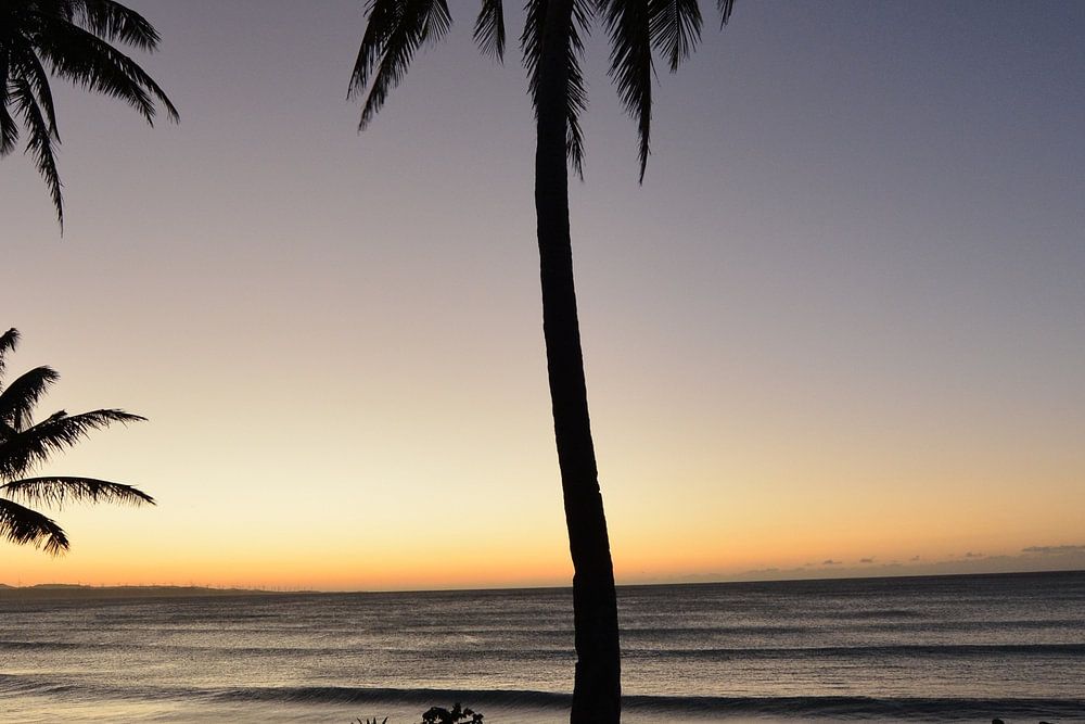 Zonsondergang op het strand van Pagudpud op de Filippijnen