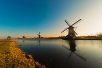 Kinderdijk in de laatste zon van de dag de molens langs het water