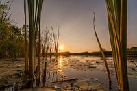Foto van een zonsondergang geschoten vanaf een bootje op de Linge in Gellicum tijdens een zomer avond