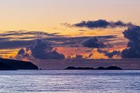 Zonsondergang op de Noordzee bij de Shetlandeilanden.