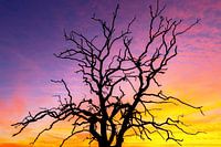 Silhouet van een oude boom vlak na zonsondergang op de Loenermark (Veluwe). Ik had mijn spullen al ingepakt en liep alweer richting huis. Toen ik nog even achterom keek zag ik dat de lucht helemaal paars/oranje gekleurd was. Razendsnel heb ik mijn camera weer uitgepakt op het statief gezet en deze foto gemaakt, een paar tellen later was…