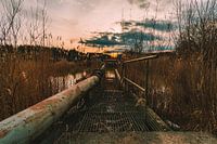 Zonsondergang op een verloren plek, een oud verlaten industrieterrein