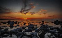 prachtige kleuren en reflecties in het water van de westerschelde bij deze zonsondergang de wolken lijken naar de zon te worden gezogen.
