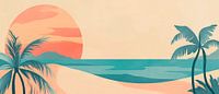 Een zachte zonsondergang baadt het strand in warme pastelkleuren, terwijl silhouetten van palmbomen de horizon omlijsten. Dit ontspannende decor nodigt je uit om te dromen en tot rust te komen. Perfect voor de woonkamer, het creëert een kalme, zonnige sfeer en brengt een vakantiestemming in elke kamer.