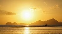 Zonsondergang aan zee op het Filipijnse eiland Siquijor. Op de horizon is een boot te zien.