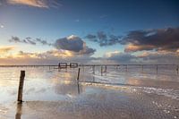 Zonsondergang op het strand van Sankt Peter-Ording bij hoogtij