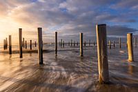 Zonsondergang op het strand bij Petten. Mooie wolkenluchten trekken voorbij met de koude noorden wind terwijl de golven op het strand slaan.