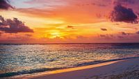 Zonsondergang op het strand met wolken en zee