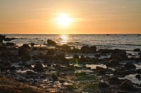 Zonsondergang op het strand van Poel. Romantische avondsfeer. Glinsterend water van de Baltische Zee. Landschapsopname bij de zee