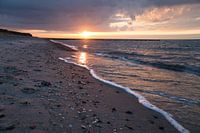Zonsondergang op het strand van Zingst. Romantische avondsfeer. Wolken verlicht door het zonlicht aan de kust. Landschapsopname aan zee
