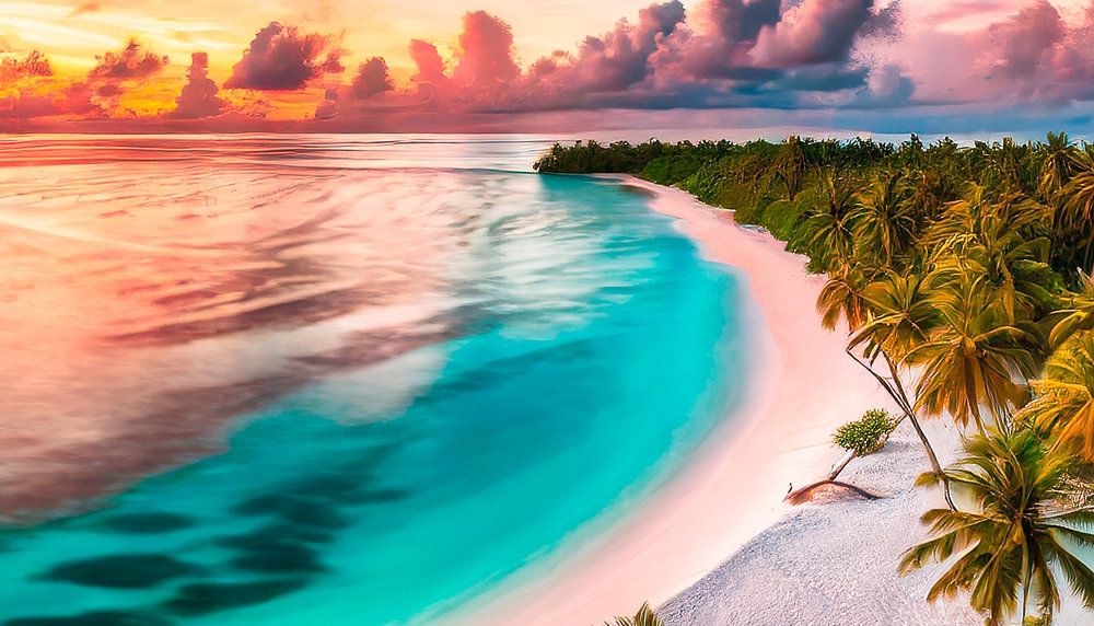 Zonsondergang op het strand met palmbomen
