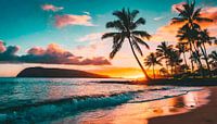 Zonsondergang op het strand met palmbomen