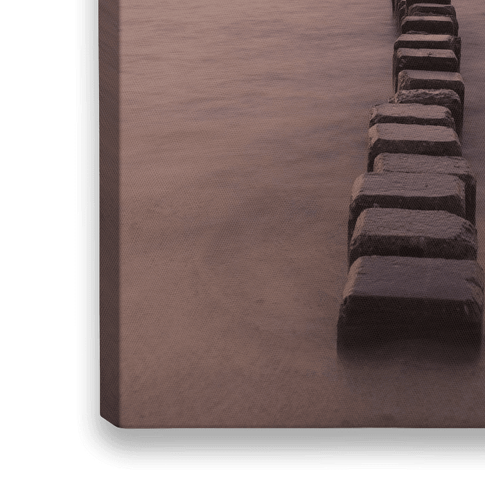 Een krib van betonnen staketsels rijst niet hoog uit het water, maar leidt het oog als een landingsbaan naar de horizon.