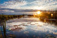 De gele plomp in het Friese water bij Kûbaard, De lucht wordt prachtig gereflecteerd in het rimpelloze water